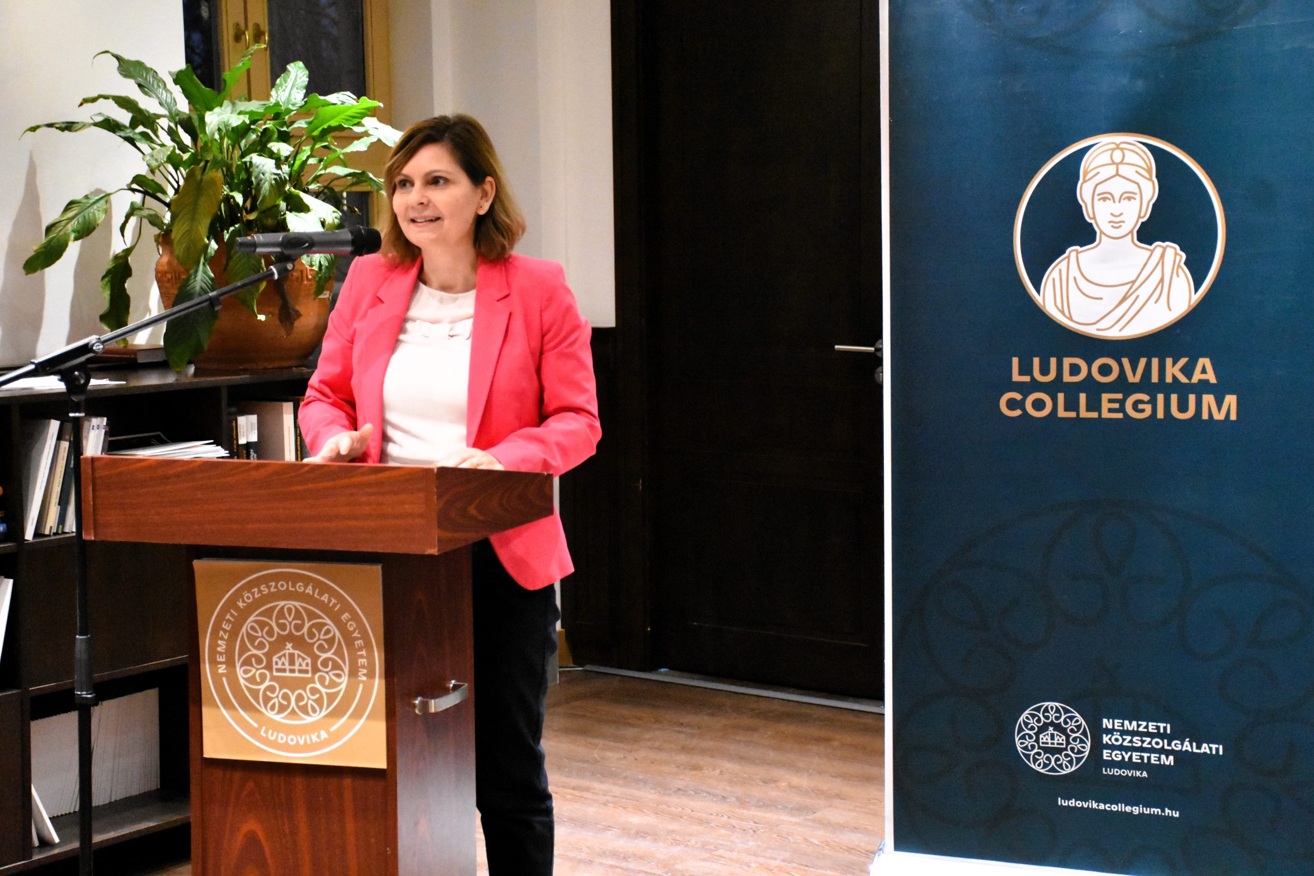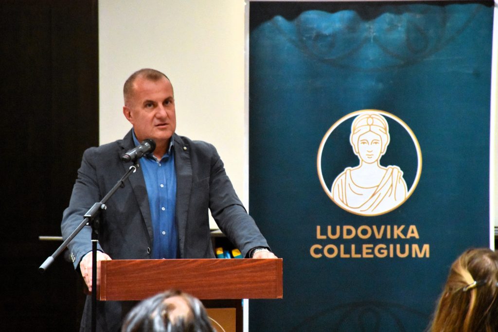 Kitta Annamária, a Ludovika Tehetséggondozó és Tudományos Képességfejlesztési Iroda irodavezetője nyitóbeszédében összefoglalta, mennyire eseménydúsan zajlott a Ludovika Collegium 2025. őszi féléve. Az idén felvett gólyák, a hagyományokhoz híven, úgynevezett Alapozó kurzusokon vettek részt: Dr. Kovács Éva Margit (a Budapesti Corvinus Egyetem docense) a Szakpolitika-alkotás alapjaiba és gyakorlatába, Dr. Pap Milán (az NKE Eötvös József Kutatóközpont Molnár Tamás Kutatóintézetének tudományos munkatársa), illetve Tóth Szilárd (az ELTE oktatója) a Politikai eszmerendszerekbe, míg Eszterhai Viktor (az NKE John Lukács Intézet tudományos munkatársa) pedig napjaink Geopolitikájába vezette be első évfolyamos hallgatóinkat. Felsőbb éves hallgatóink egyik része Dr. Glant Tibor kurzusvezető (a Debreceni Egyetem Észak-amerika Tanszék és az NKE JLI kutatóprofesszora) által az USA politikájában és kultúrájában mélyedhetett el, ezzel párhuzamosan Dr. Bartóki-Gönczy Balázs (az NKE ÁNTK tudományos dékánhelyettese) vezetésével a világűr kutatási témáját, lehetőségeit fedezhették fel a kurzusra jelentkező hallgatók.