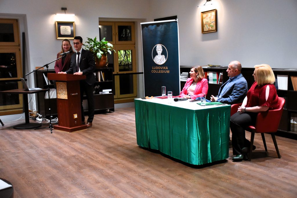 Aktuális félévünk lezárása a vezetőség tagjainak – Kitta Annamária irodavezető asszony, dr. Cseri Petra Patrícia osztályvezető asszony, Dr. Kovács László vezérőrnagy, a Nemzeti Közszolgálati Egyetem tudományos rektorhelyettese –, valamint a Ludovika Collegium hallgatóinak részvételével került megrendezésre a Nemzeti Közszolgálati Egyetem John Lukacs Társalgójában, az esemény házigazdái konferansziéként Kovács Anna és Sahin Máté LC-hallgatók voltak.