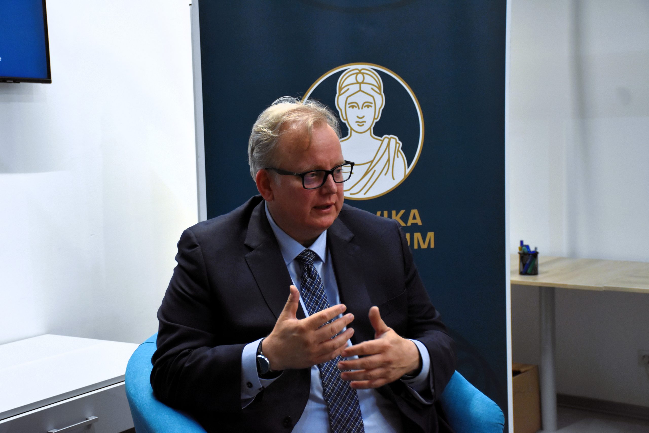 A Ludovika Collegium április 21-ei közéleti estjén Mocsáry Péter nagykövet urat, Szerbia Európai Integrációs Minisztériumának szakértőjét láttuk vendégül, akivel a diplomácia és az európai integráció útvesztőiről – fókuszban a Nyugat-Balkánnal – beszélgettünk. Az eseményt Kovács Kincső Nárcisz, a Ludovika Collegium és az ELTE ÁJK Jogász osztatlan képzés hallgatója moderálta, aki köszöntőjében kiemelte a hallgatóság sokszínűségét, hogy a nemzetközi tanulmányokat folytatók mellett leendő jogászok, közgazdászok, orvosok és rendőrök is részt vettek az esten. Ennek szellemében a beszélgetés célja az is volt, hogy rávilágítson, a balkáni térség geopolitikája hogyan kapcsolódik ezekhez a látszólag távolabbi szakterületekhez.