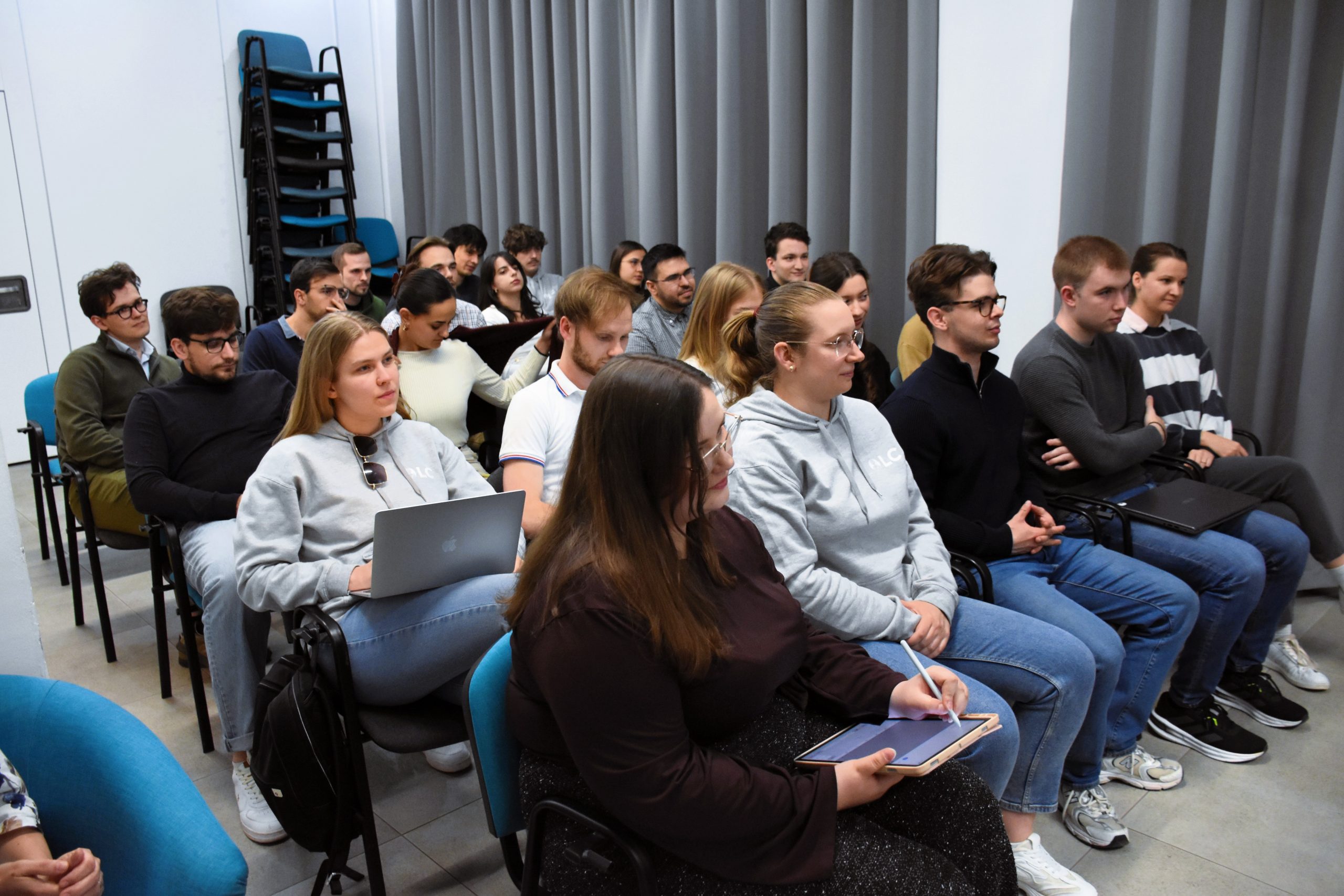 Az est egy rendhagyó és személyes felvezetéssel indult. A korábbi megszokásokkal ellentétben a moderátor arra kérte a nagykövet urat, hogy ő maga mutassa be szakmai útját, és emelje ki azokat a sorsdöntő választásokat, amelyek eljuttatták jelenlegi pozíciójához. Az első, személyes életútra fókuszáló blokkban megismerhettük az embert a diplomata mögött. Szó esett a nemzetközi kapcsolatok iránti elköteleződés mozgatórugóiról, az országokon átívelő karrier nehéz pillanatairól és az azokból levont tanulságokról. Emellett hasznos útravalóval és tanácsokkal is ellátta azokat az egyetemistákat, akik a jövőben uniós intézményeknél szeretnének elhelyezkedni.
